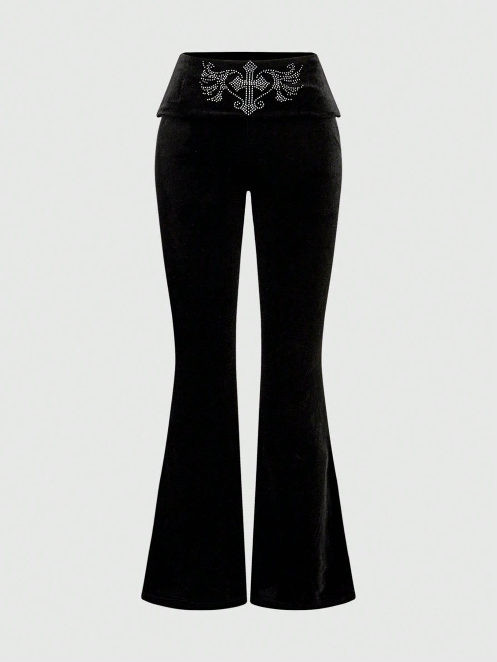 ROMWE Grunge Punk Conjunto de Calça Flare Cropped de Veludo Y2K