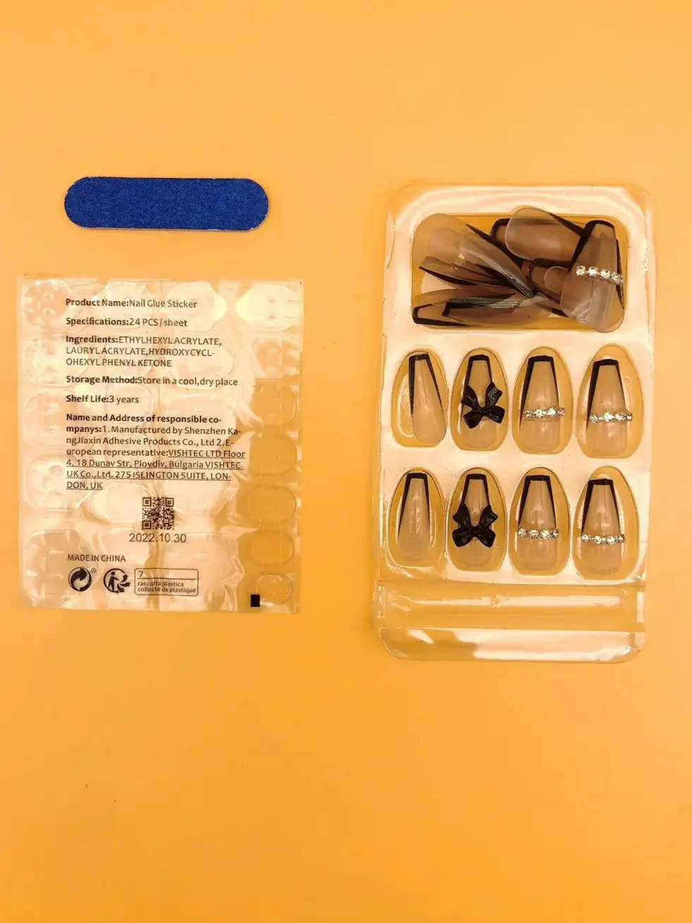ROMWE Kawaii 24 peças Comprido Caixão Decoração de arco Unha Falsa & 1peça Lixa