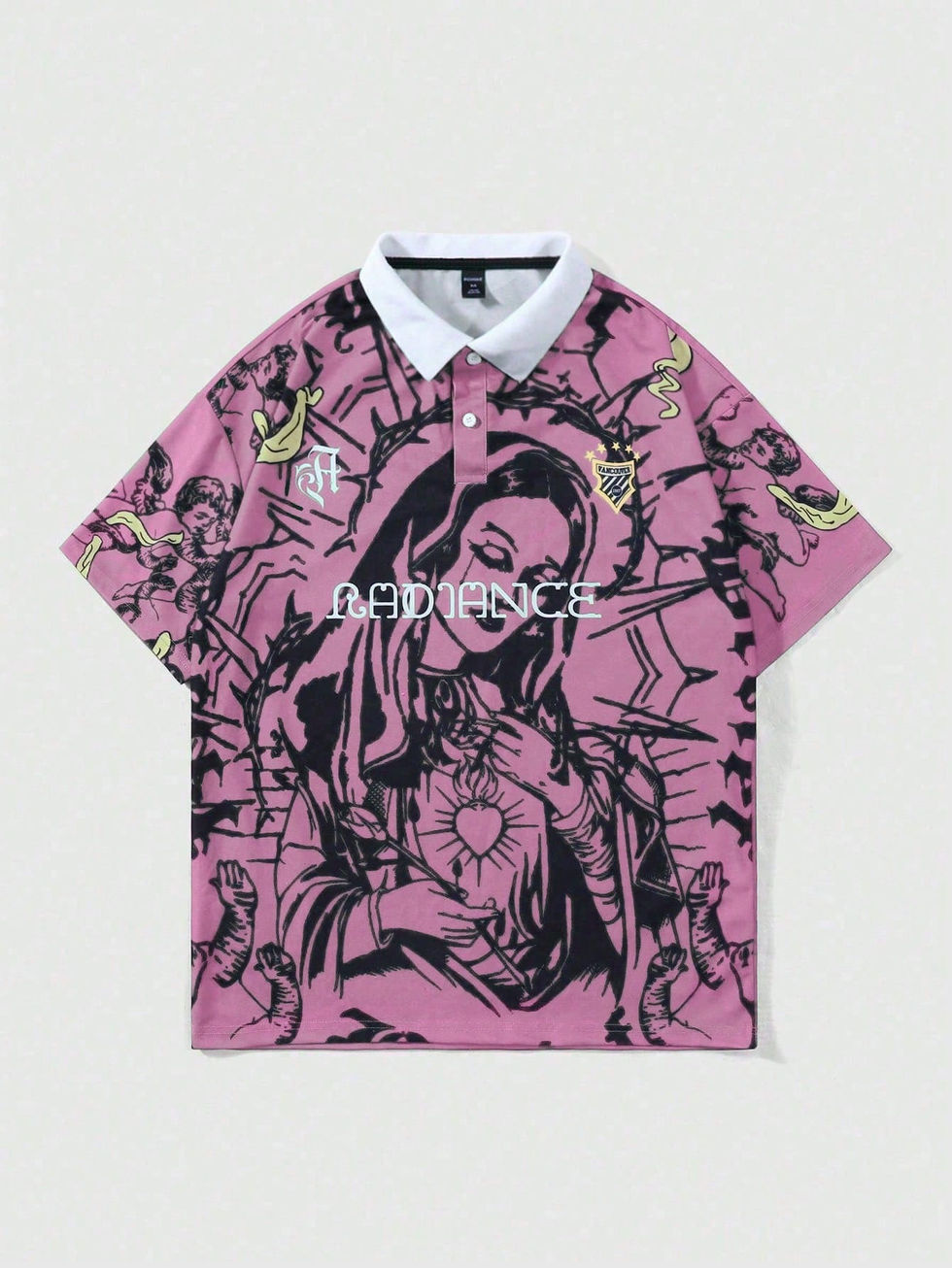 ROMWE MEN Camisa Polo com Estampa Gráfica de Figura Masculina, Estilo Camisa de