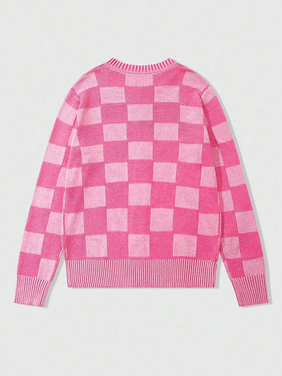 ROMWE MEN Prep Cardigan Folgado com Botões e Estampa Xadrez de Cores Contrastan
