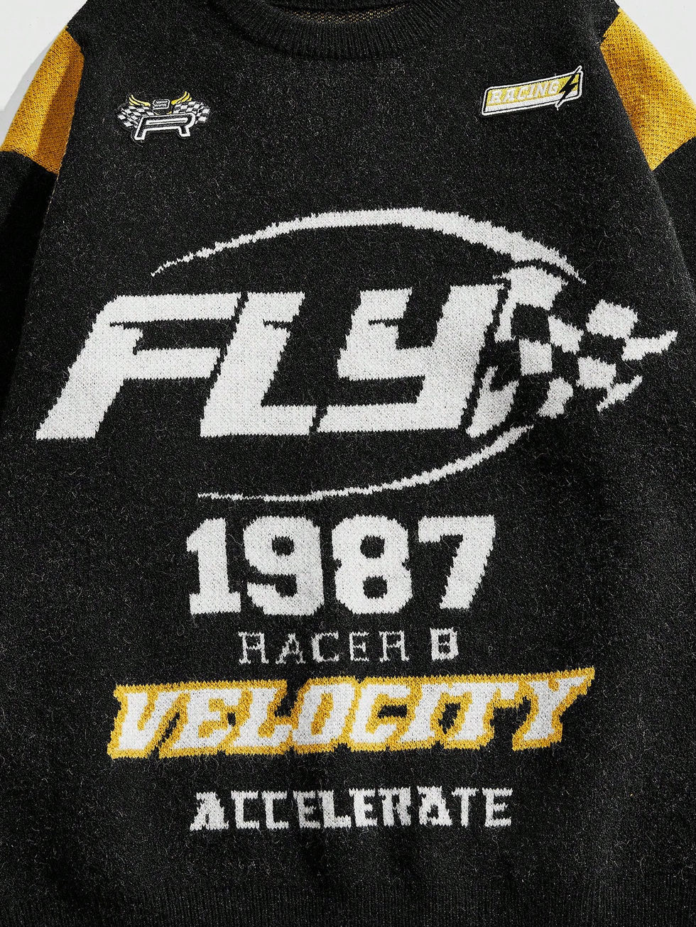 ROMWE MEN Prep Suéter Casual de Manga Longa com Padrão de Letra para Homens, Ou