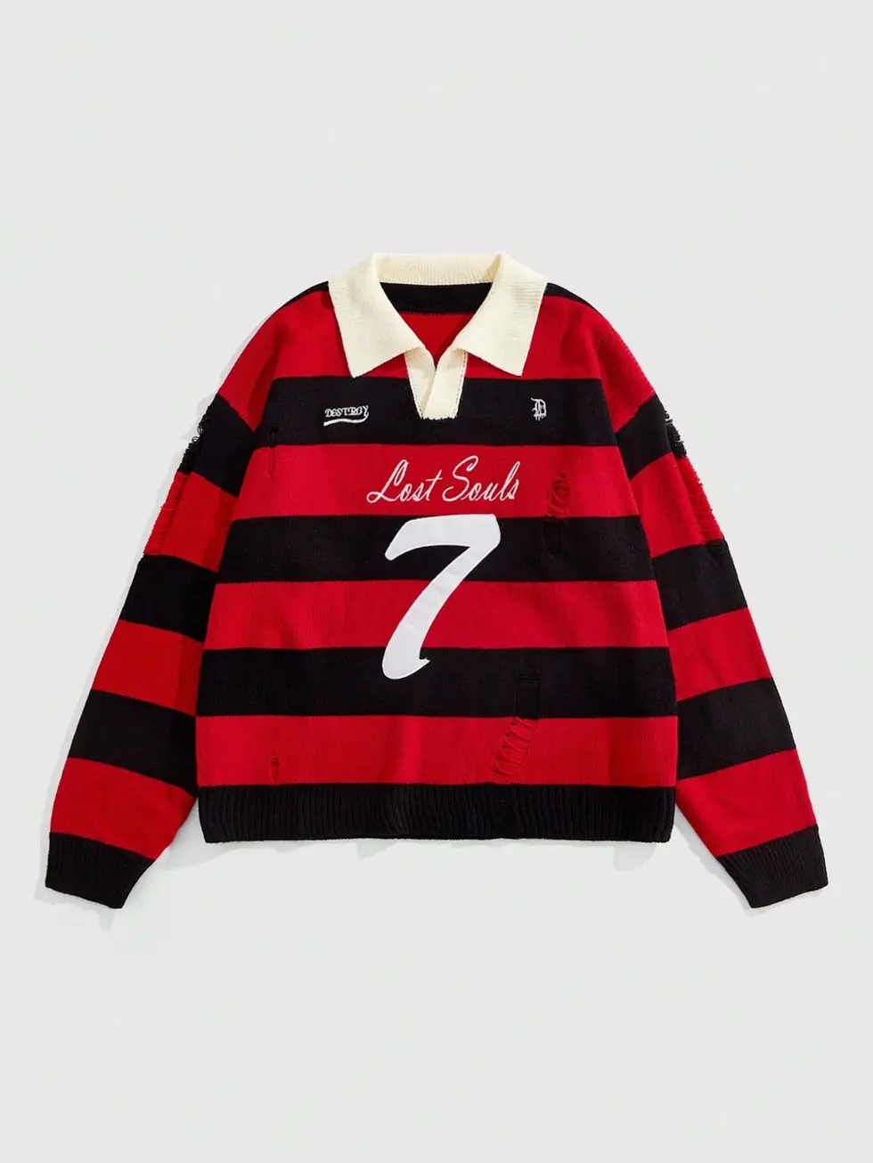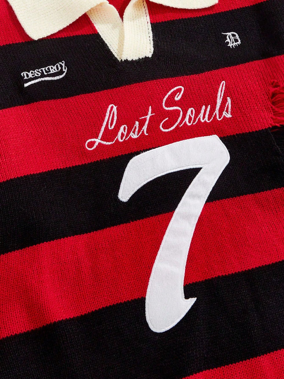 ROMWE MEN Prep Suéter de Manga Longa Listrado com Bordado Masculino, Estilo Sol