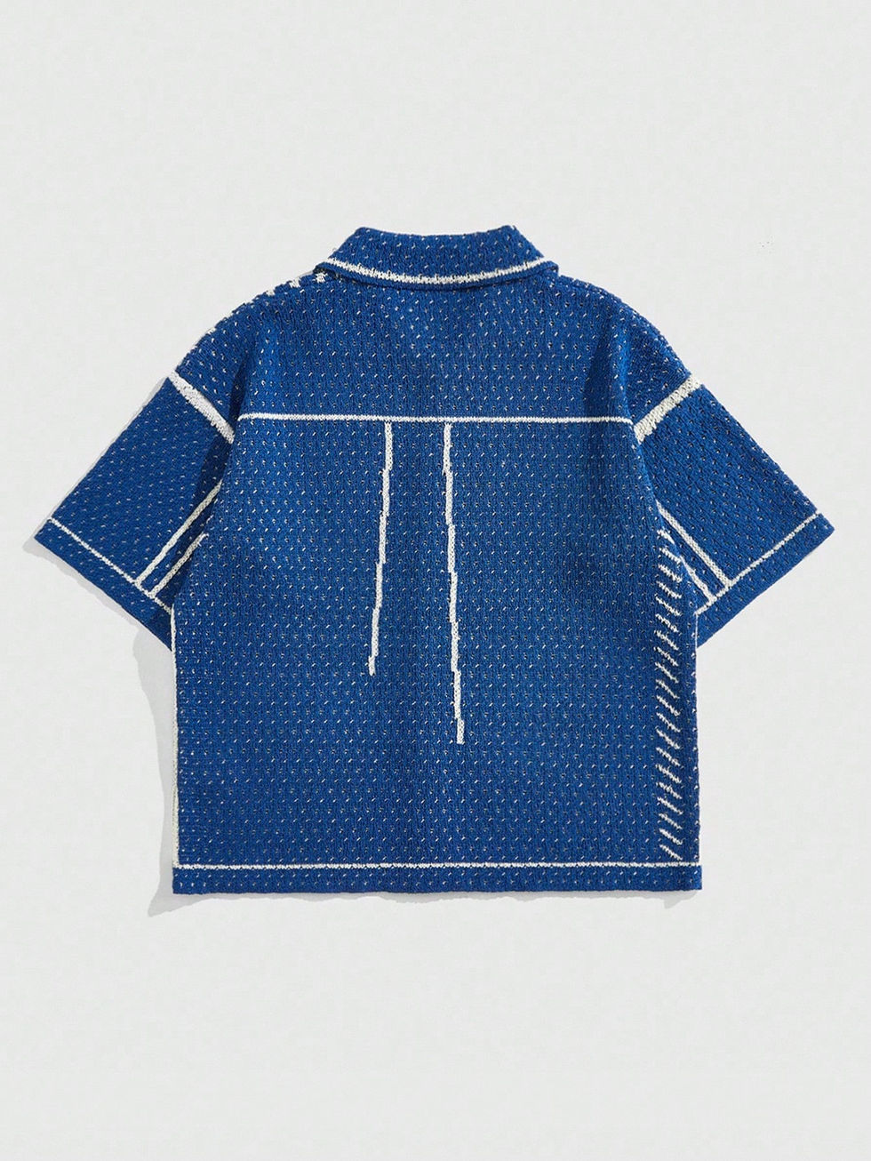 ROMWE MEN Prep Top Solta de Malha Masculina, Tops de Manga Curta de Malha