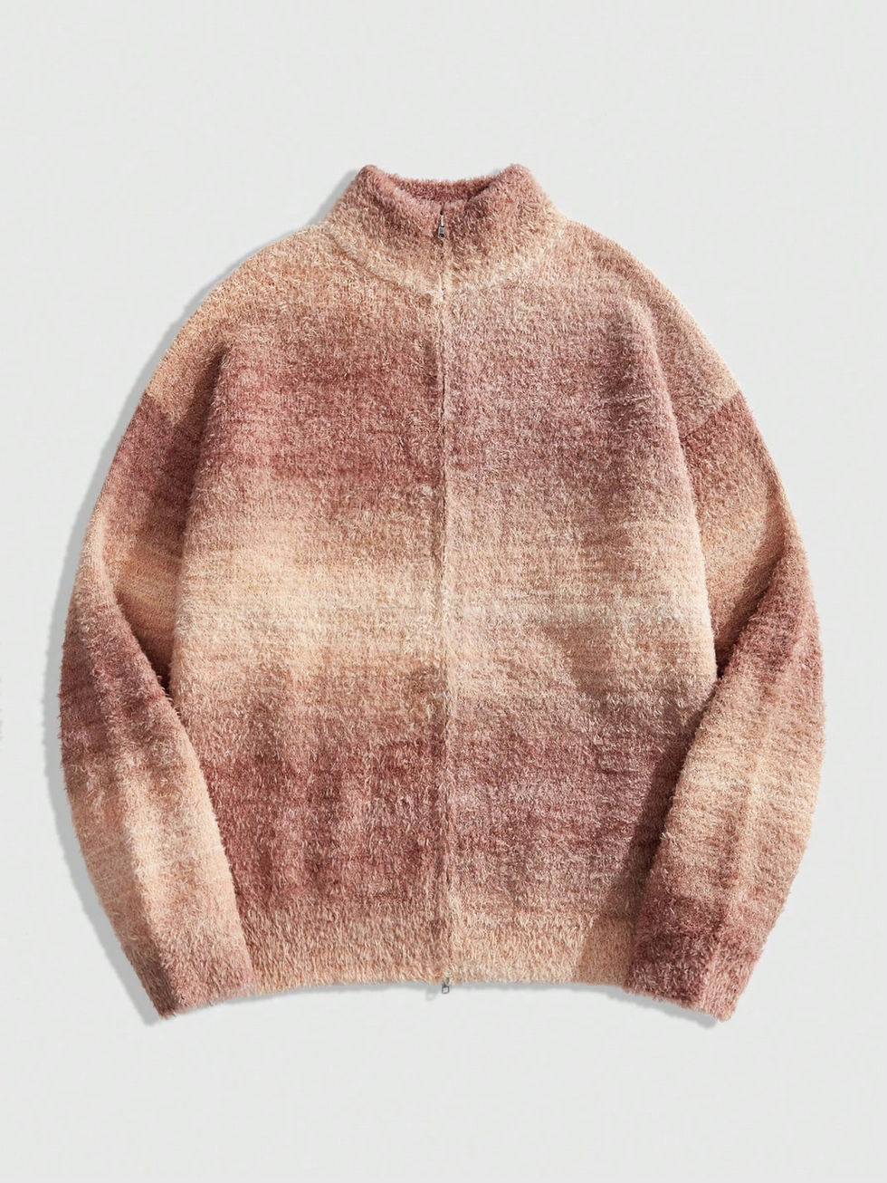 ROMWE MEN Street Life Cardigan Casual Solto com Zíper e Manga Longa Tie Dye Mas