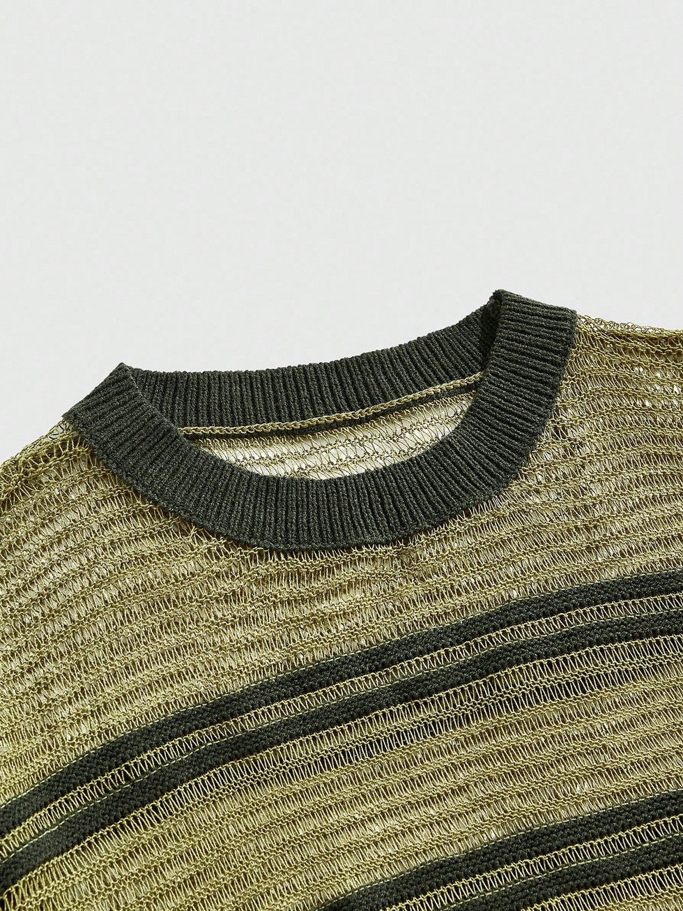 ROMWE MEN Street Life Suéter Casual de Tricô com Ombros Caídos, Gola Redonda e