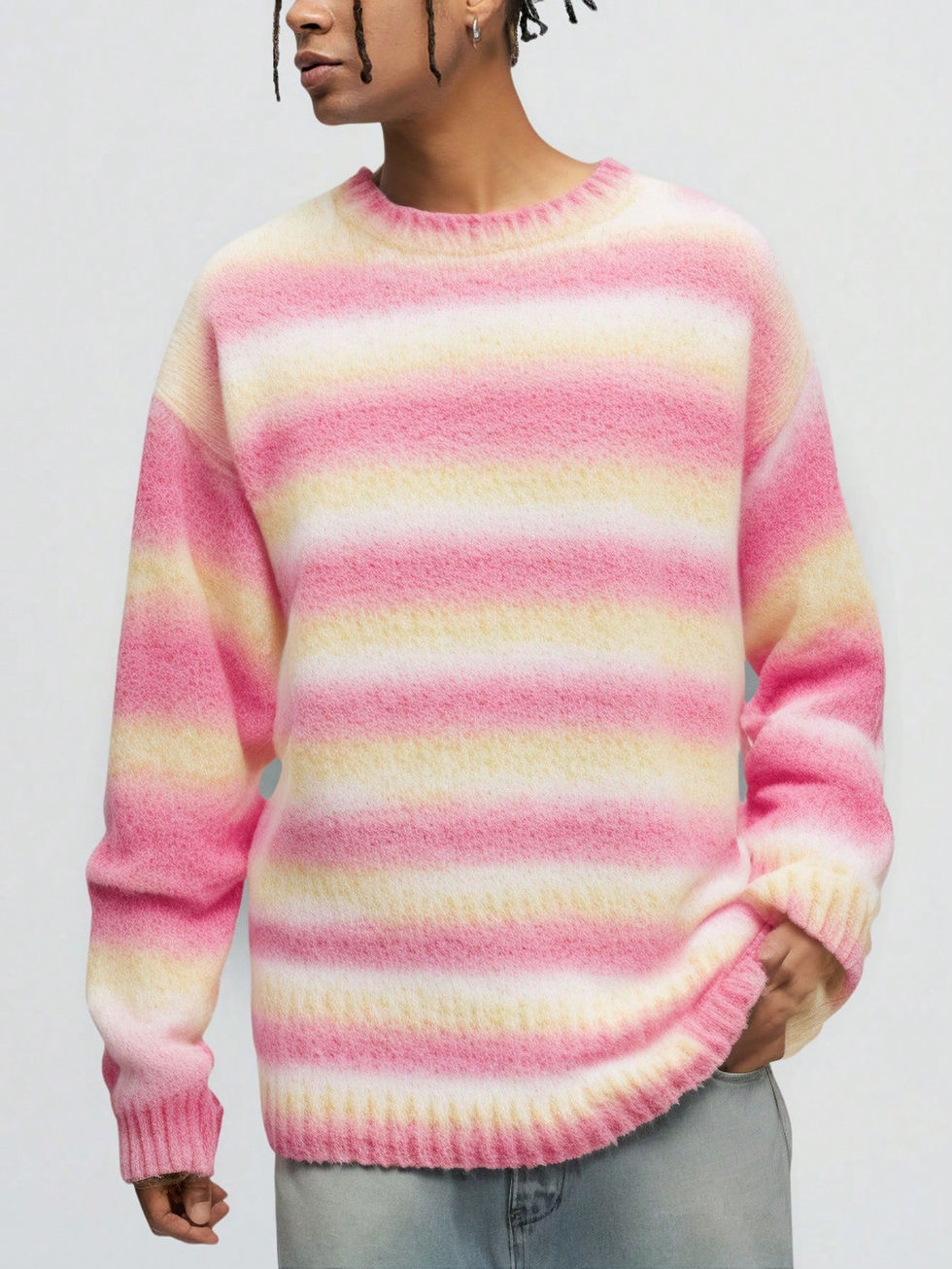 ROMWE MEN Street Life Suéter de Gola Careca com Degradê Macio e Felpudo para Di