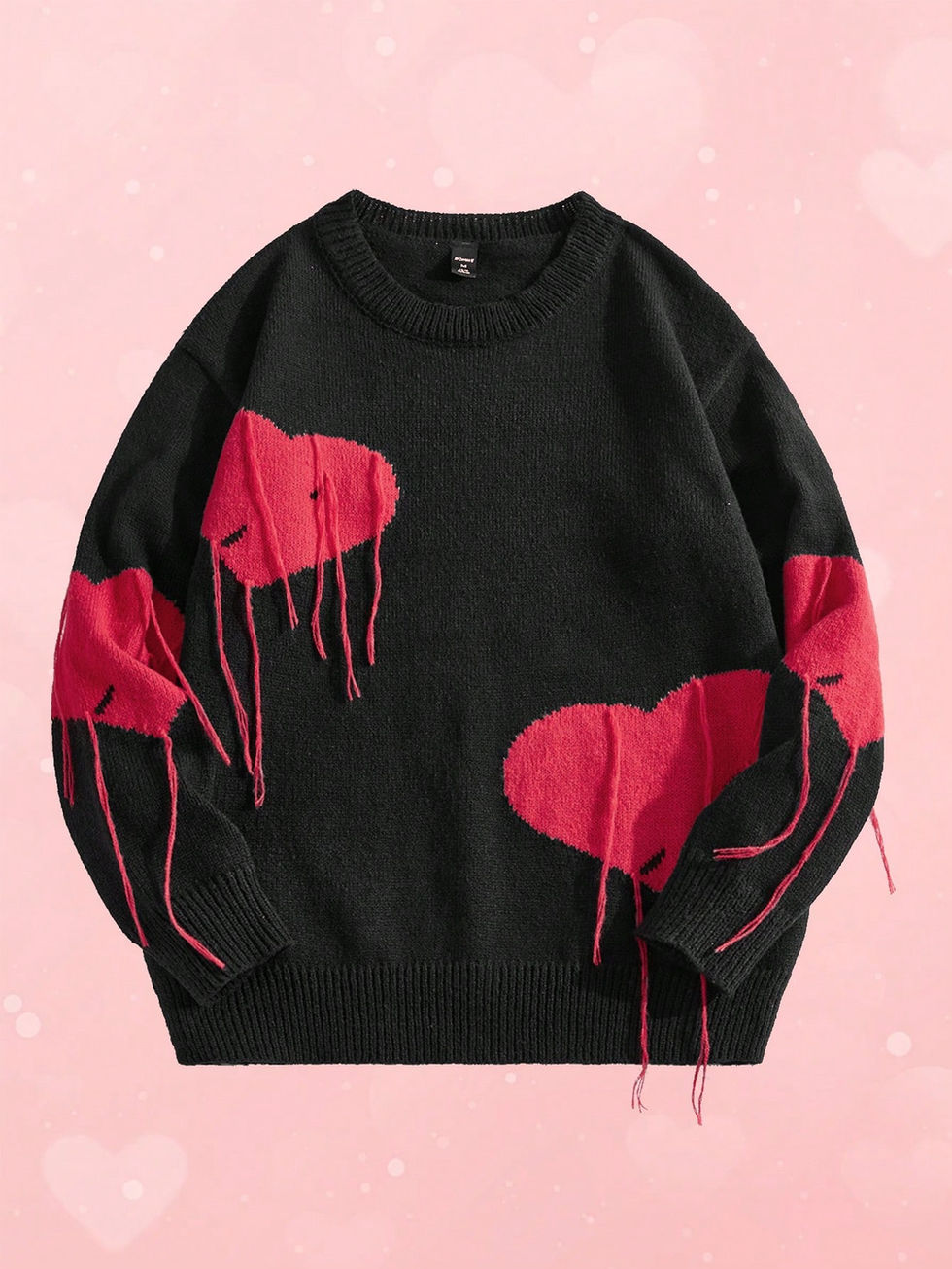 ROMWE MEN Street Life Suéter de Malha Casual de Caimento Solto com Padrão de Co