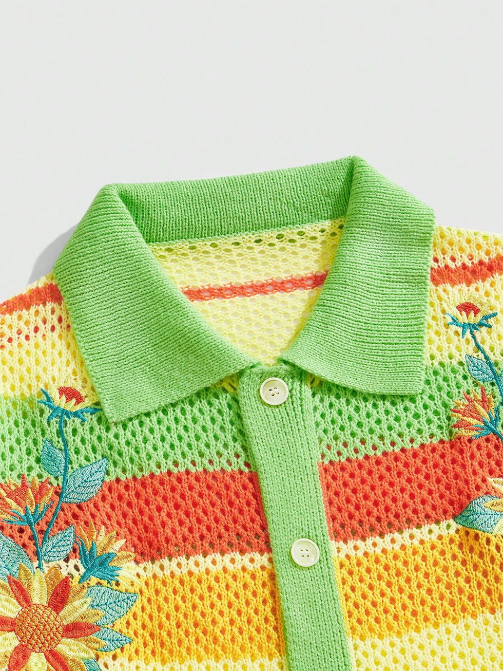ROMWE MEN Street Life Suéter Masculino Bordado Floral Tricotado, Top de Tricô p