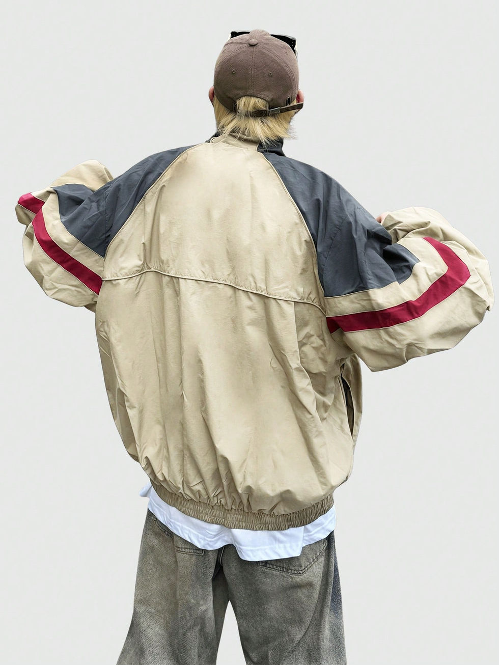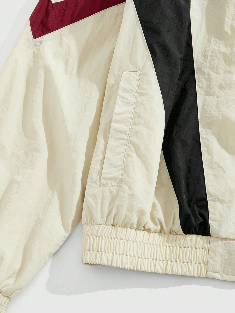 ROMWE Street Life Jaqueta Casual Masculina de Outono com Blocos de Cores e Reta