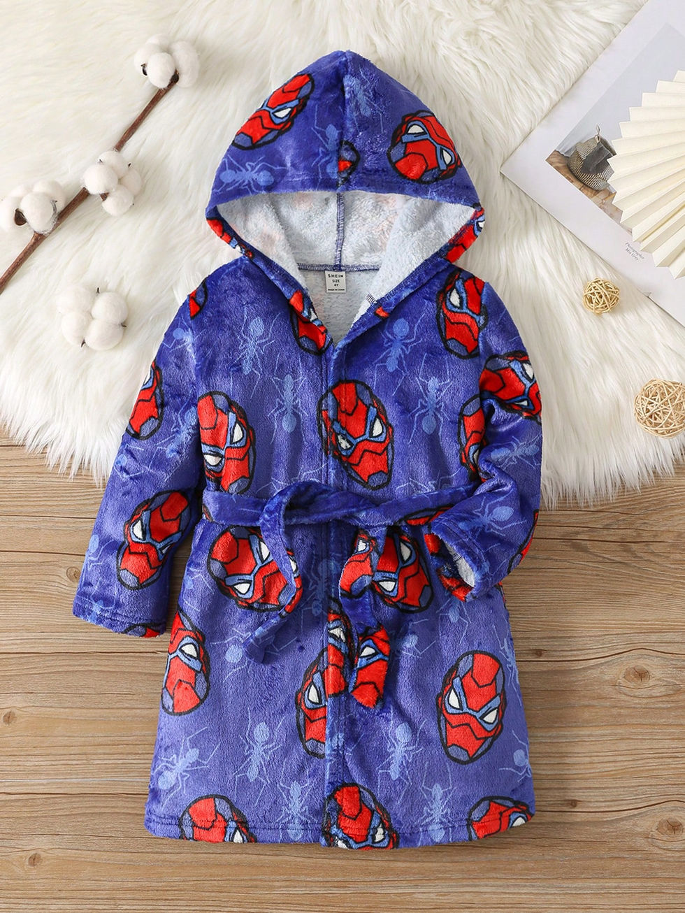 Roupão de Banho com Capuz Resistente a Chamas de Flanela Estampada com Super-He