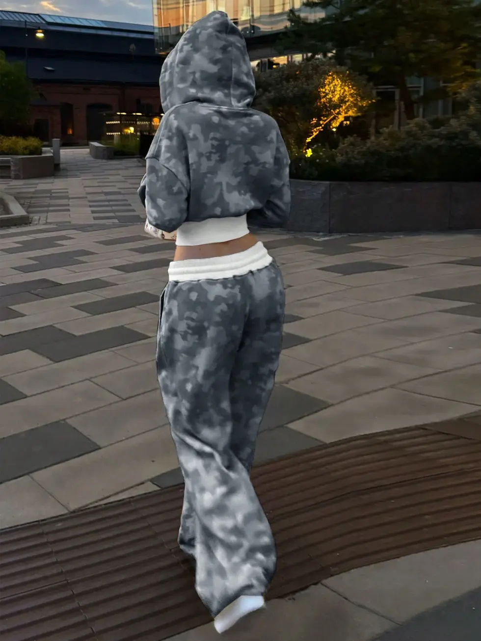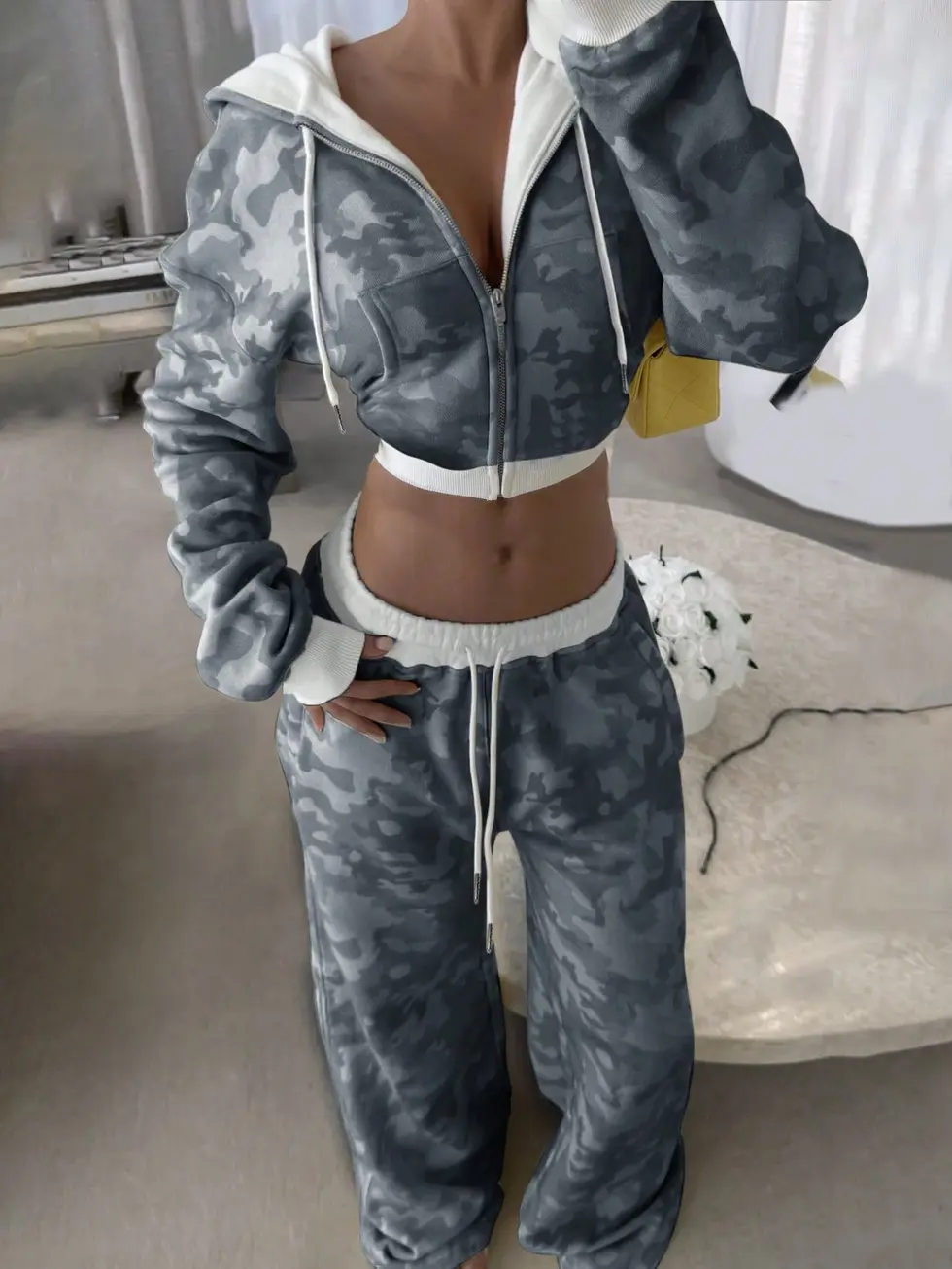 Rovax 2 peças Conjunto de Jaqueta com Capuz e Zíper com Estampa de Camuflagem e