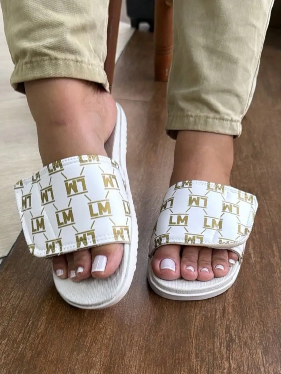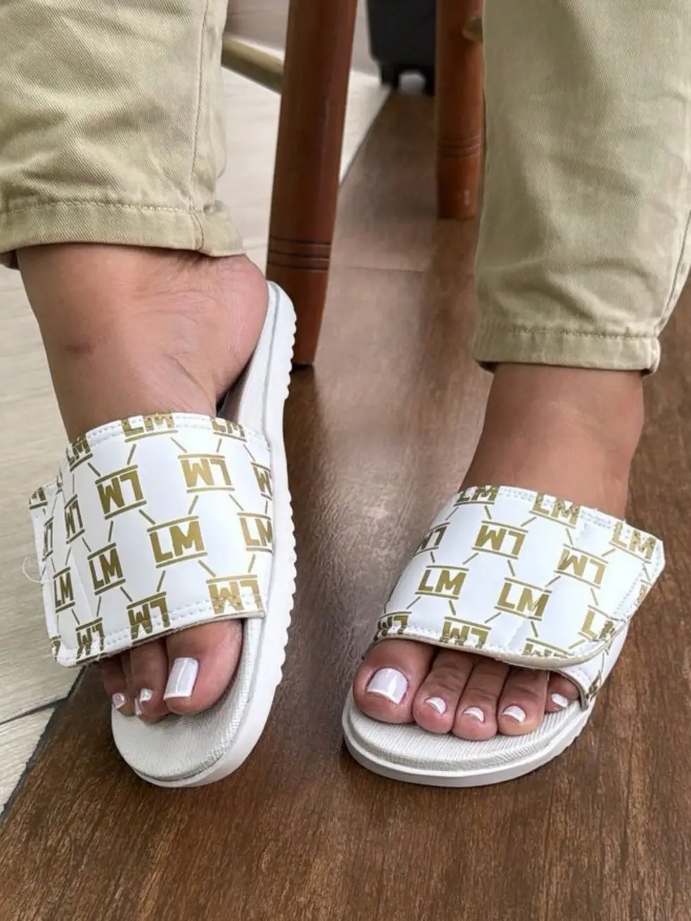 Sandália Rasteira Feminina LM Com Ajustes Moda logomania quadriculado