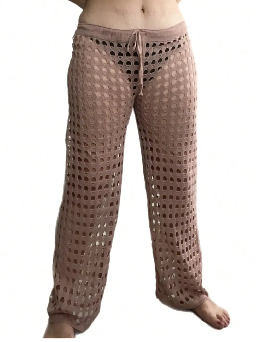 Saída de Praia Calça Feminina Tricot Crochê para Biquini de Praia
