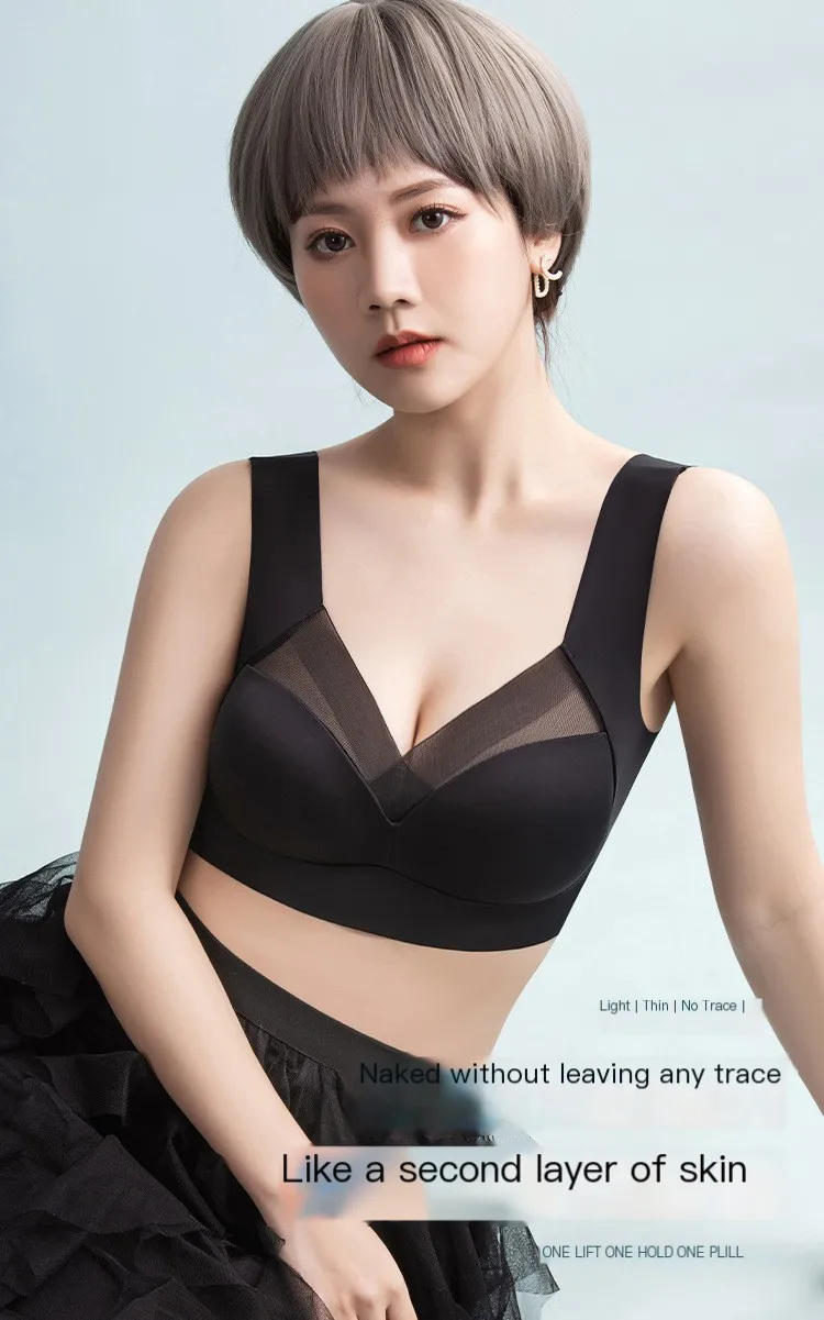 Sexy Seamless ice silk Plus Size Bra Women Patchwork Lace Push Up
