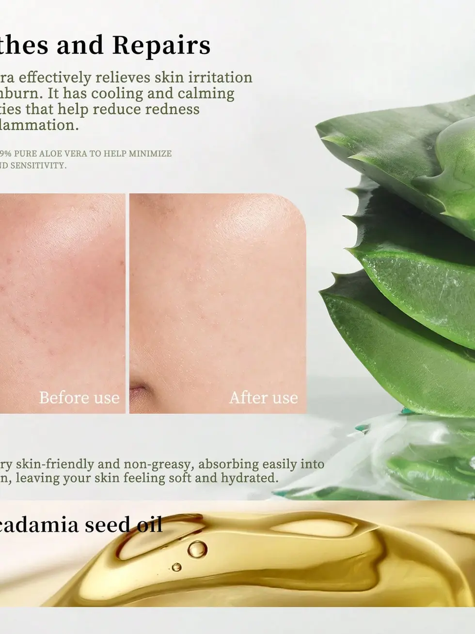 Efeito : Hidratante, Cuidados pós-sol, Calmante e reparador