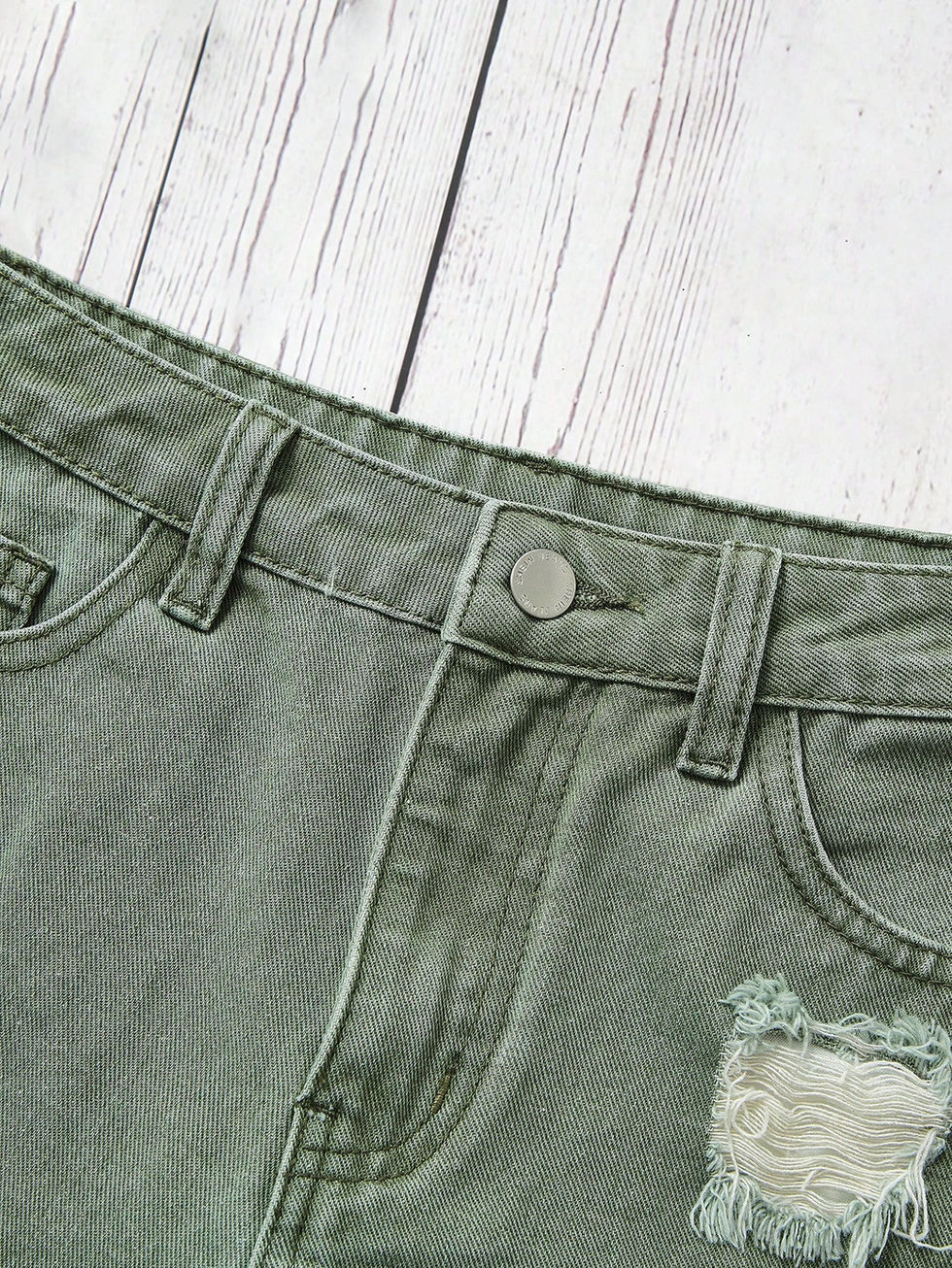 Shorts Jeans Rasgados Com Franjas Para Adolescentes Meninas