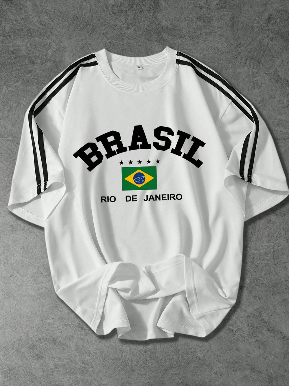 Shwiy Camiseta Esportiva de Verão Masculina com Fita Preta, Manga Curta, Estamp