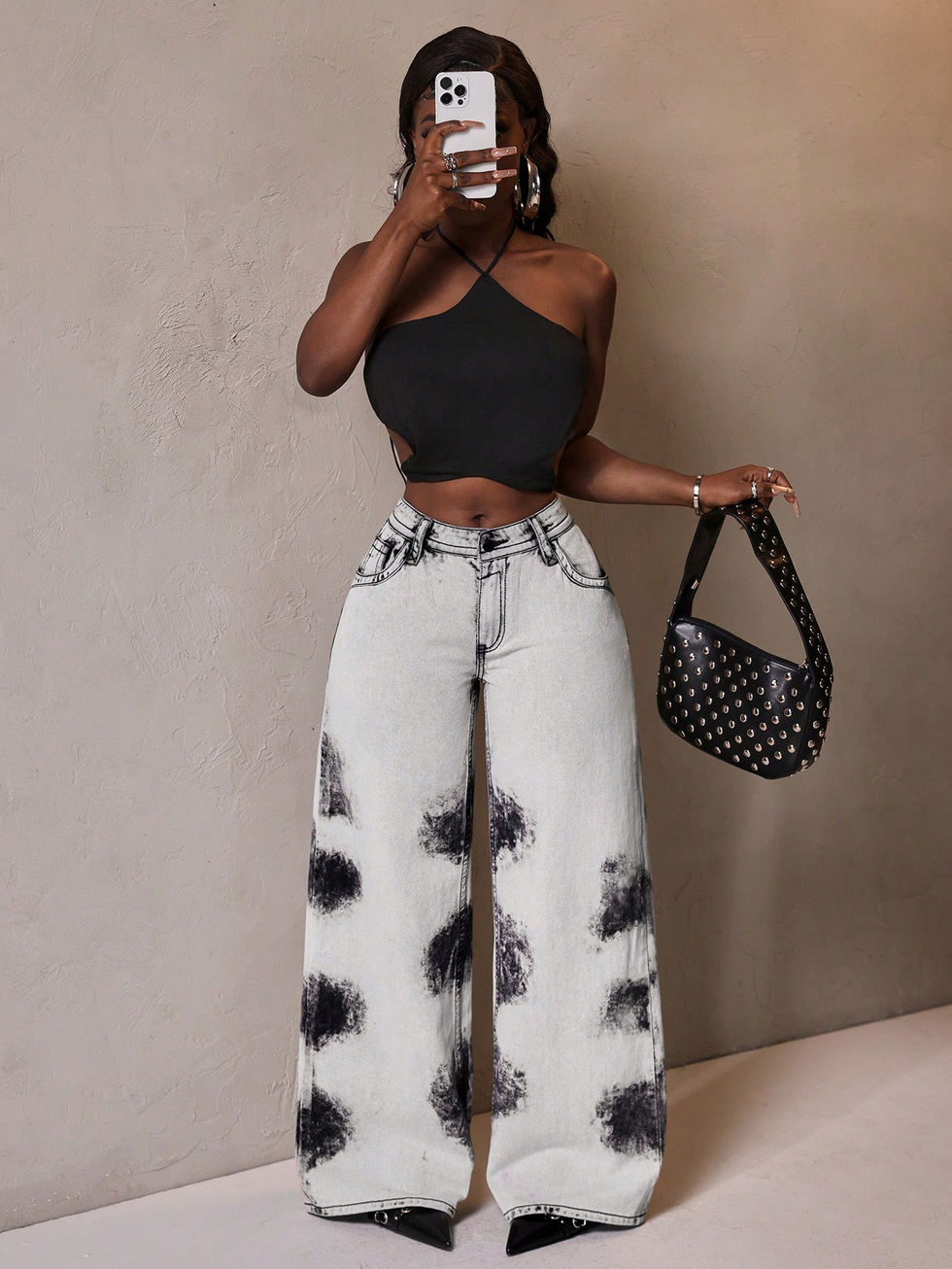 Slaydiva Jeans Casuais de Uso Diário de Moda Simples para Mulheres