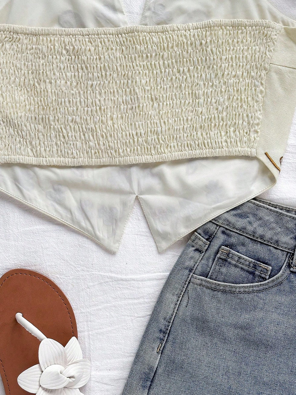 Soleia Cropped Top Feminino Estilo Boêmio com Alças Trançadas e Bordado Floral,