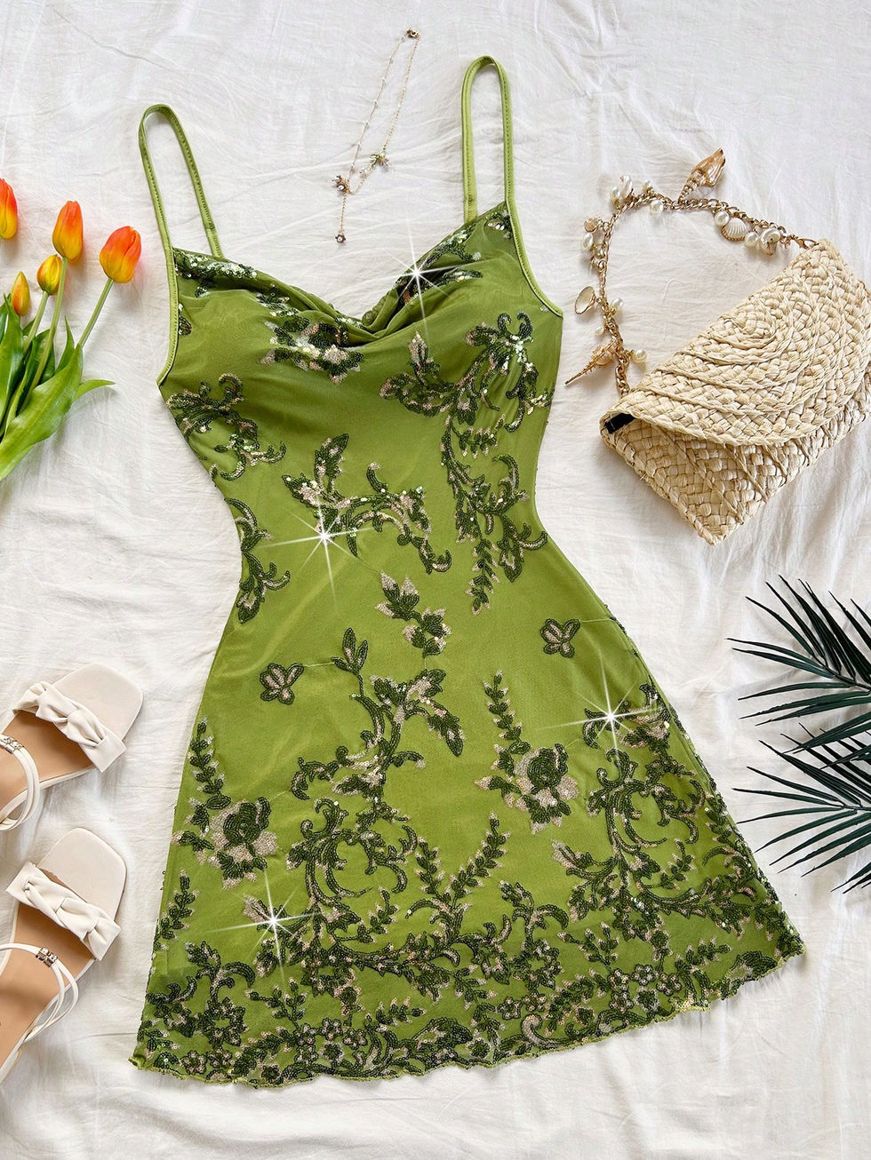 Soleia Vestido Slip com Decote Drapeado e Cor Degradê para Férias na Praia de V