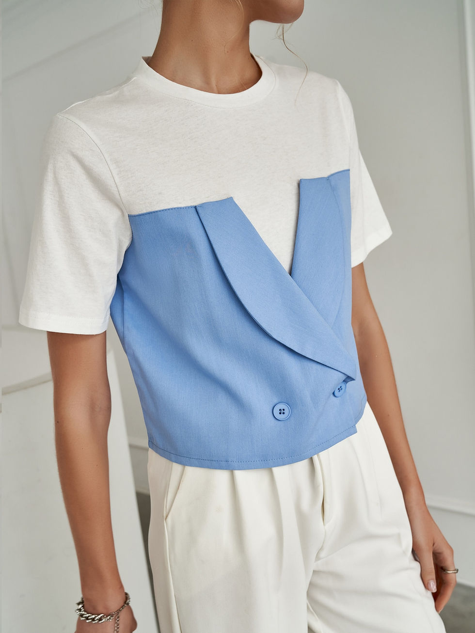 Sollinarry Botão Duplo Bloco de cores ocasional Top