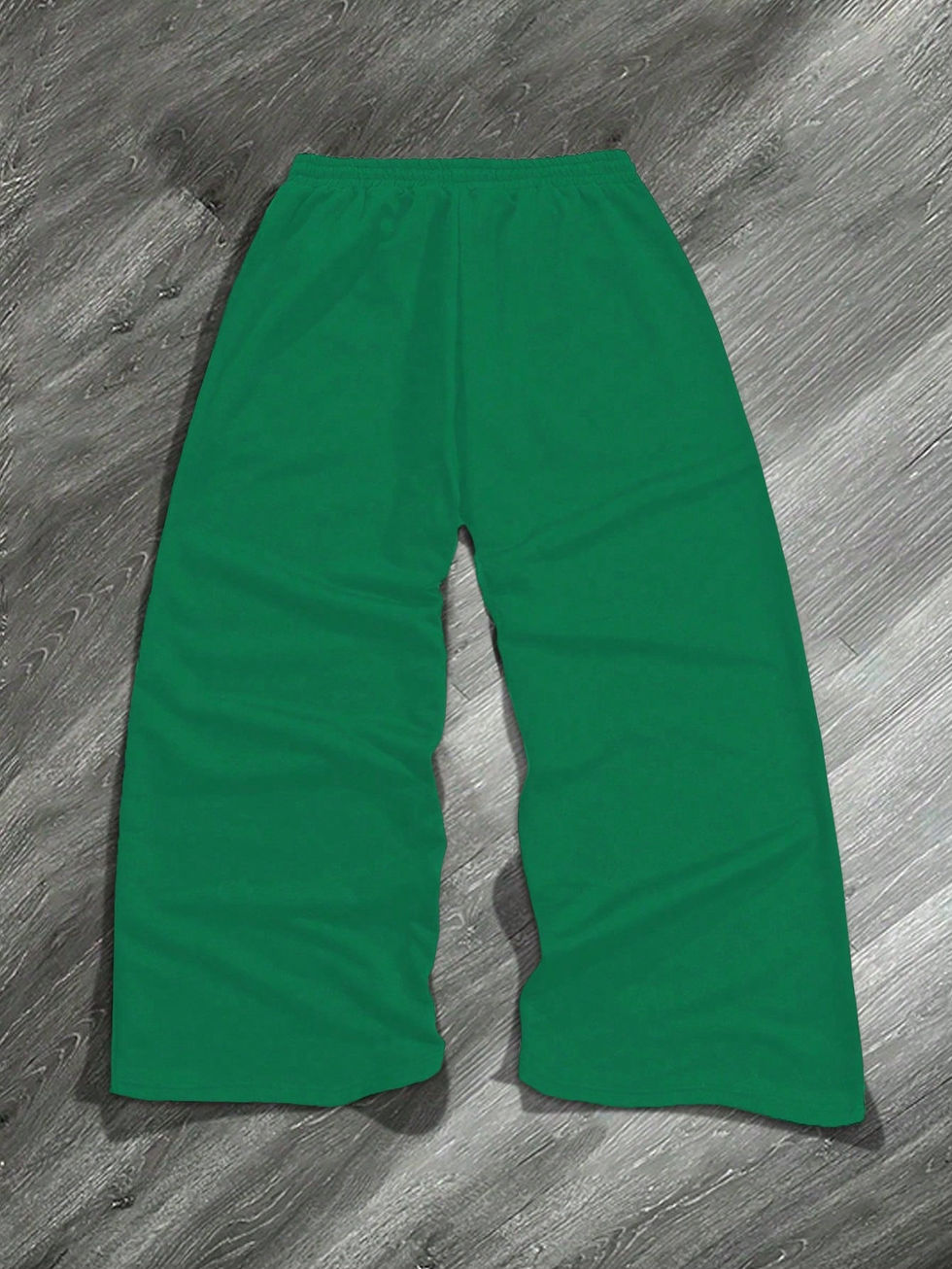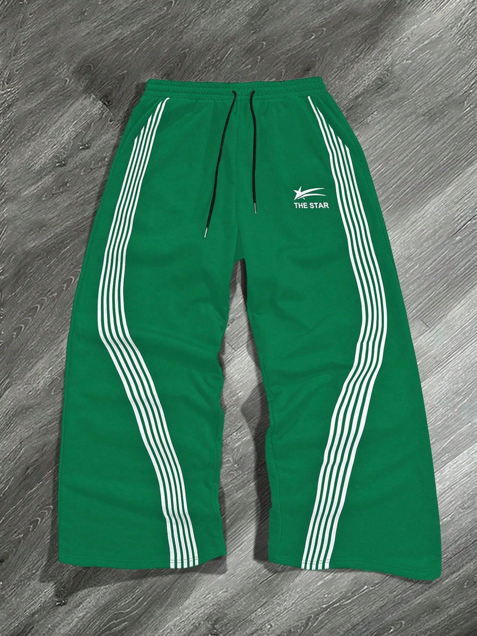 Sporsity Calça de Moletom Masculina Folgada com Estampa de Slogan, Cordão na Ci