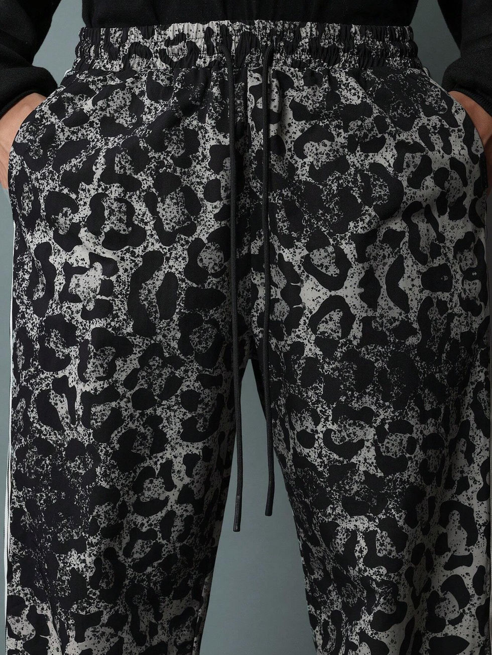 SUMWON Calça de Moletom com Estampa de Onça Pintada, Listras Laterais, Padrão D