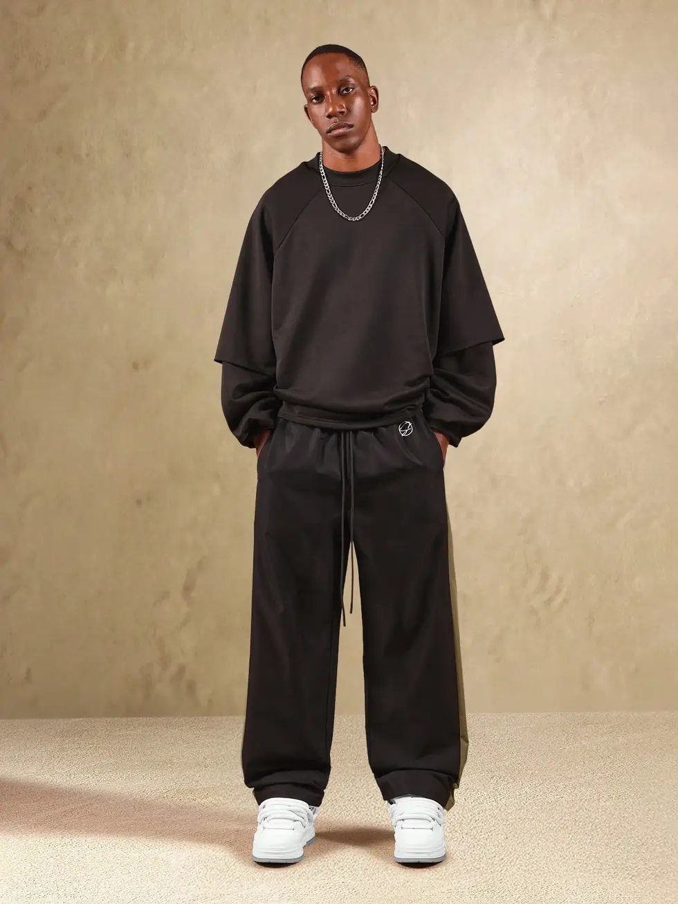 SUMWON Calça de Moletom Solta Estampada com Listra Lateral, Cintura com Cordão