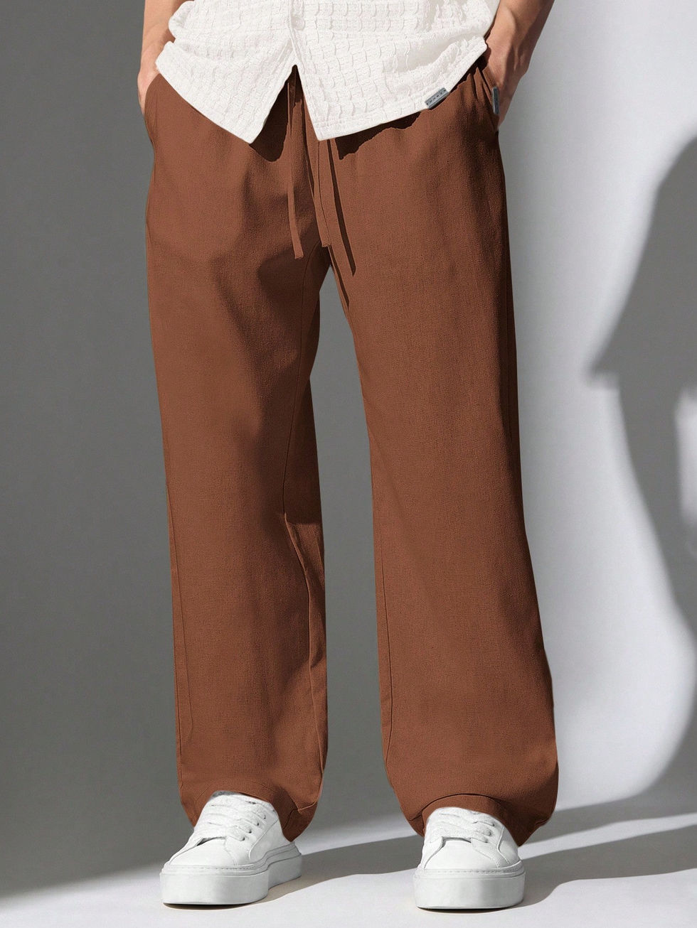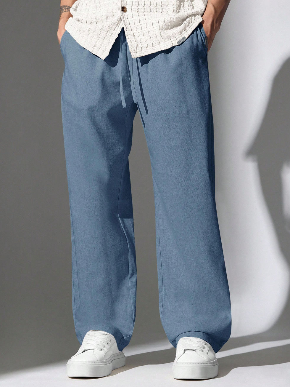SUMWON Calça de Vista de Linho Premium, Ajuste Patinador, Cordão na Cintura, Ve