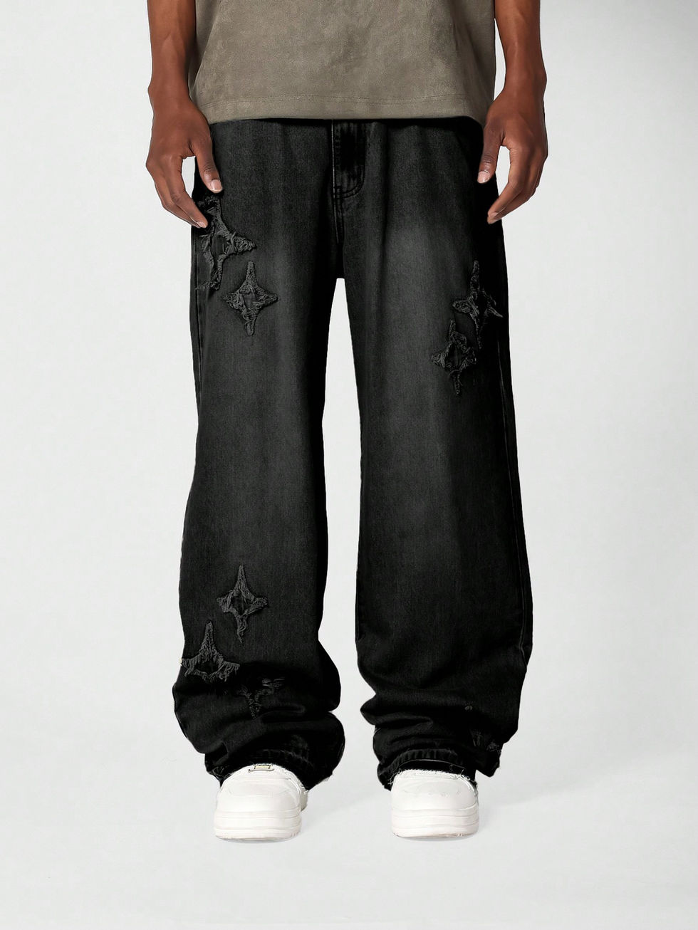 SUMWON Calça Denim com Aplique e Caimento Solto