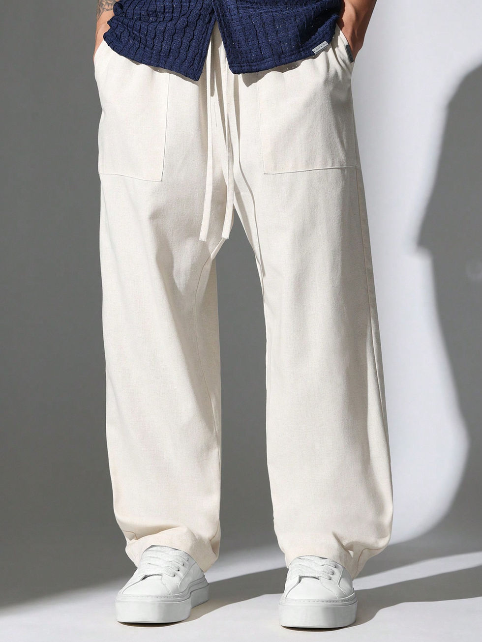 SUMWON Calças Palazzo de Perna Larga com Cordão, Modelagem Solta e Relaxada, Es