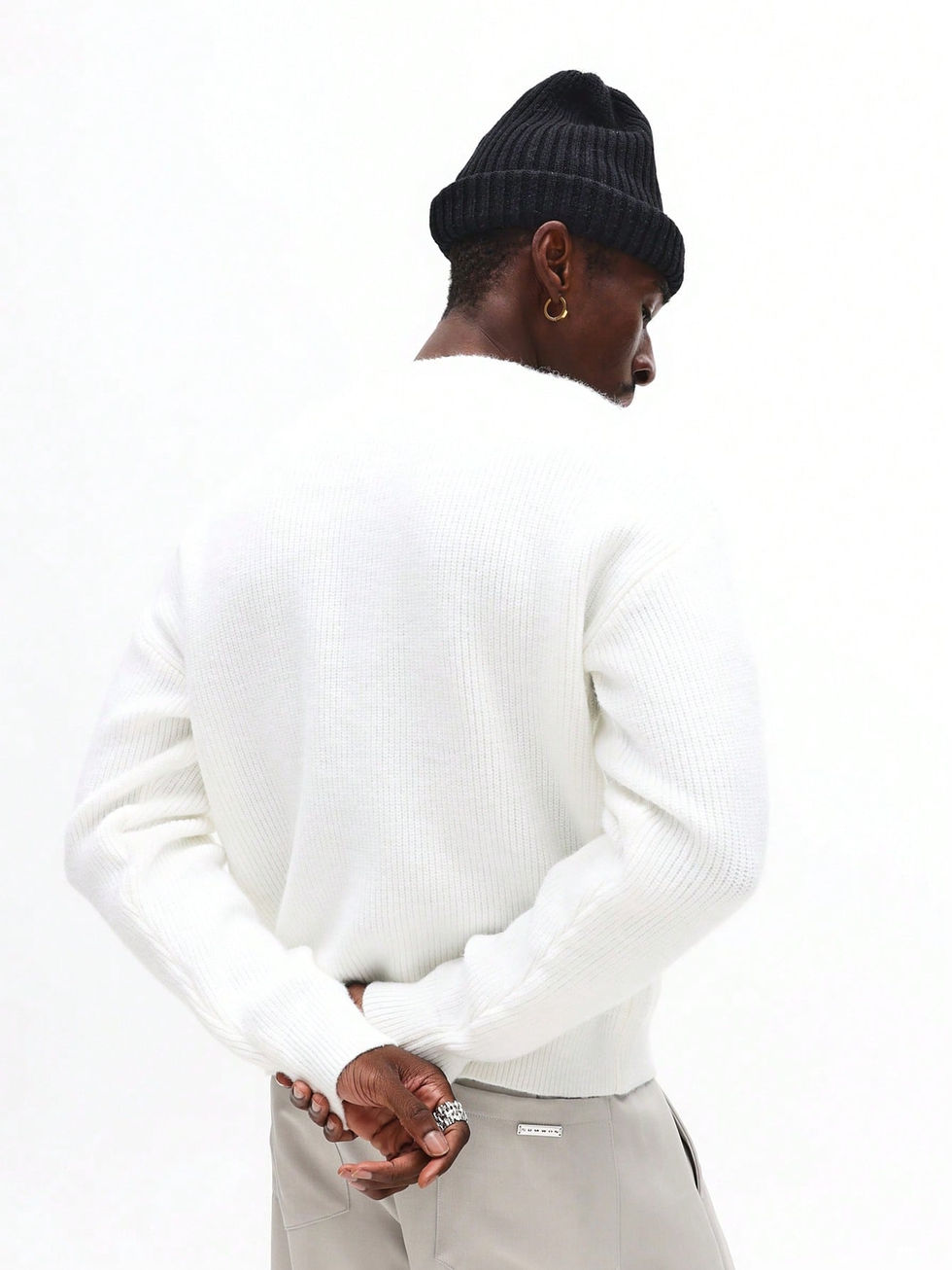SUMWON Suéter de Tricô Canelado de Luxo com Detalhe de Emblema Metálico, Casaco