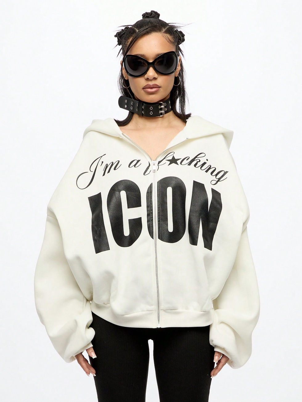 SUMWON WOMEN Moletom Oversized de Declaração com Estética Y2K, Estampa de Texto