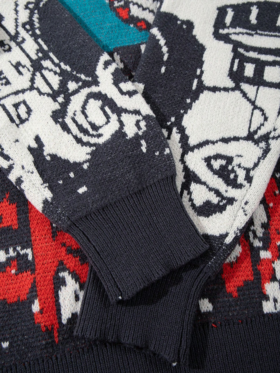 Suéter de Gola Redonda Casual Unissex de Manga Longa com Listras e Estampa de D