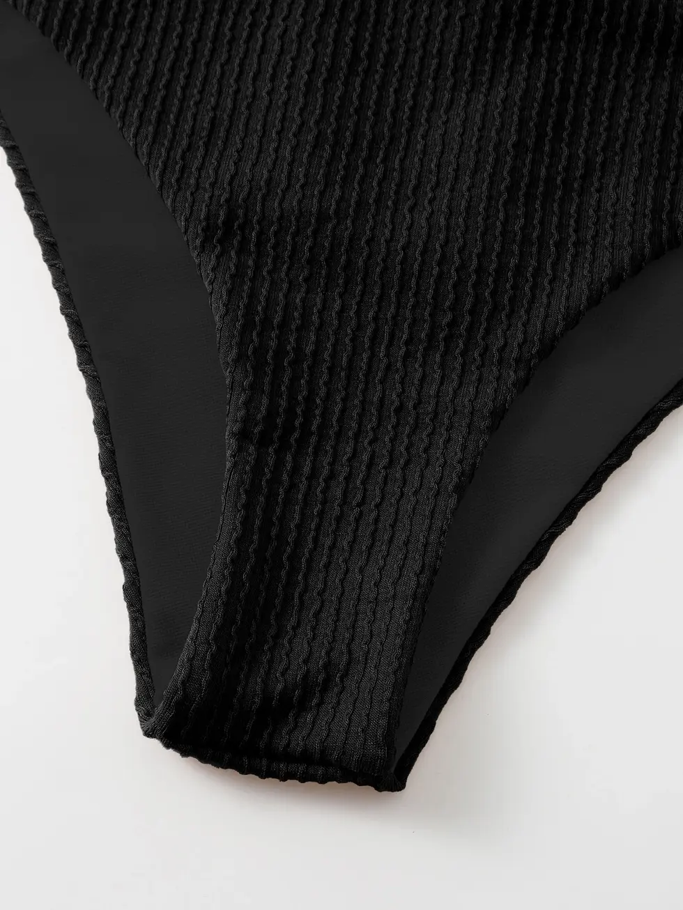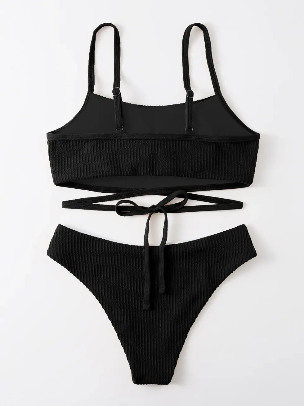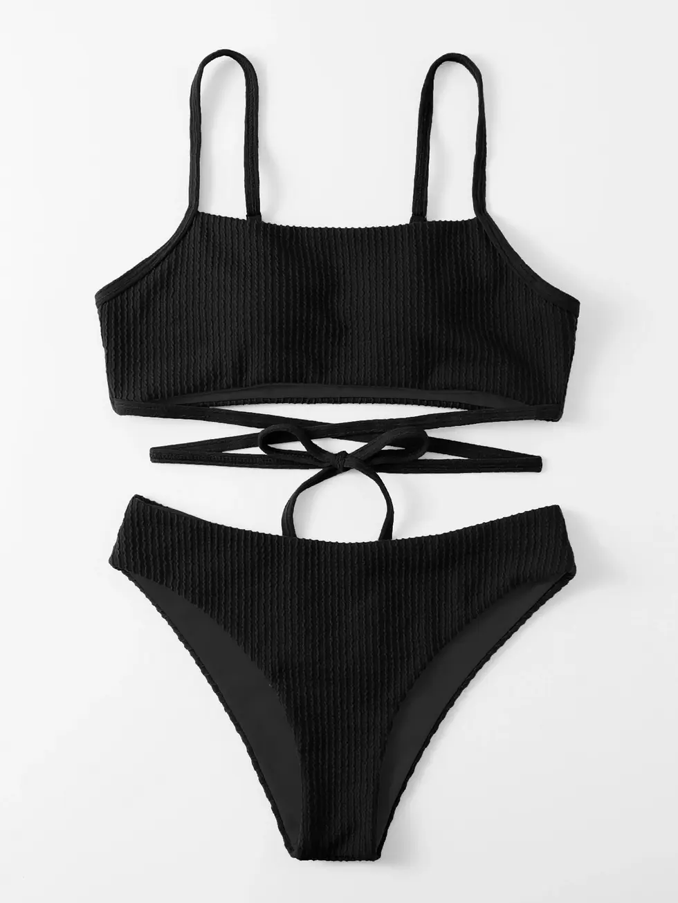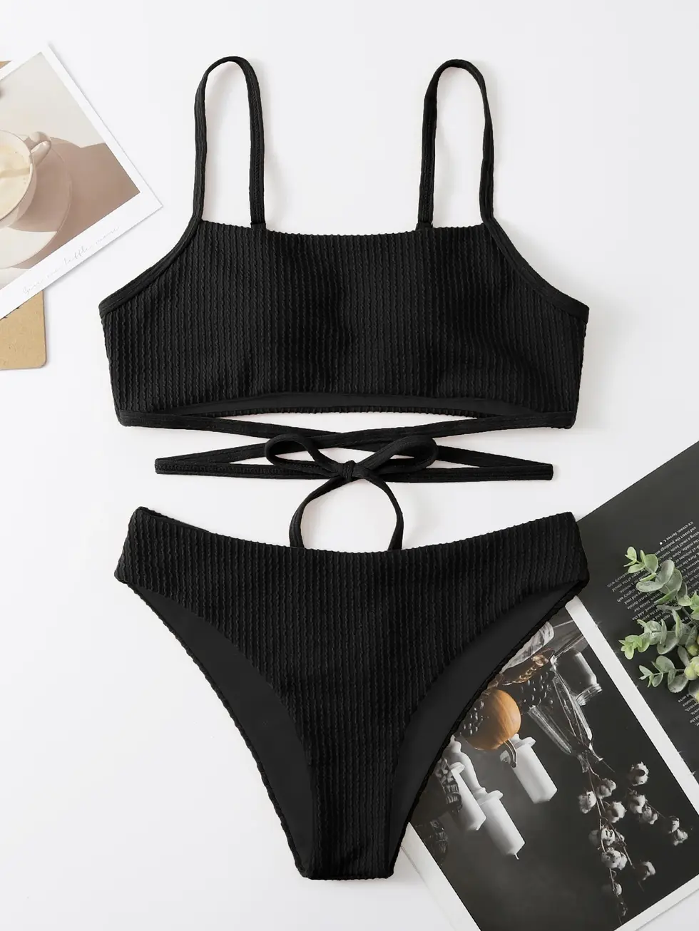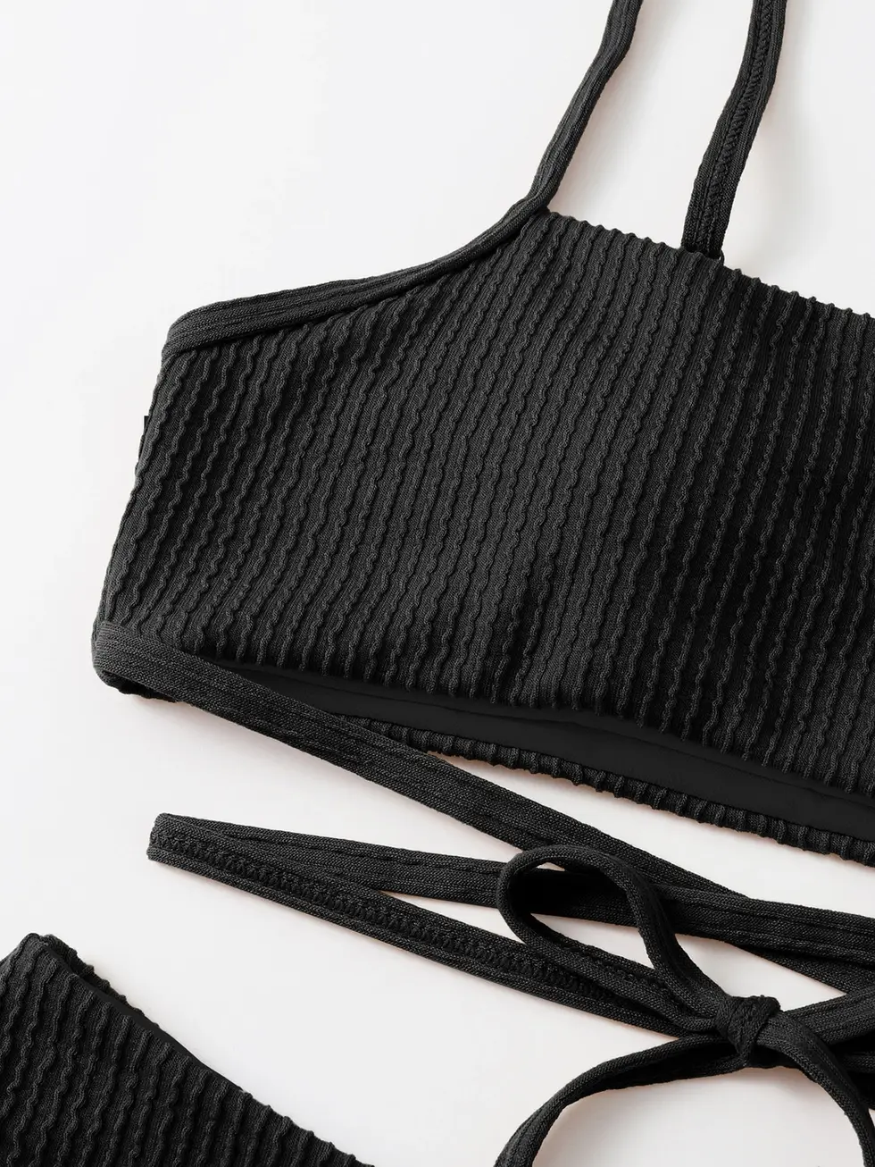 Swim Conjunto de Maiô Bikini com Textura de Praia de Verão, Top de Sutiã Sem Fi