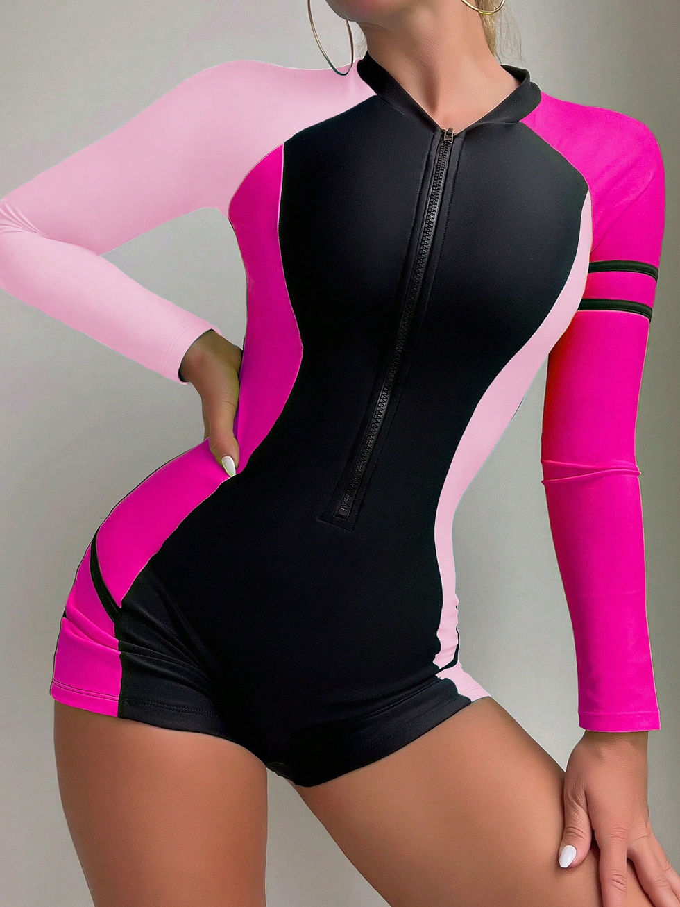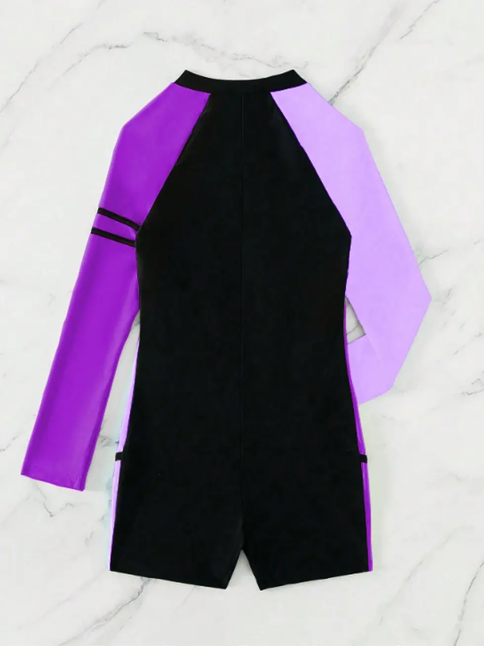 Swim Maiô De Uma Peça Slim Fit Color Block