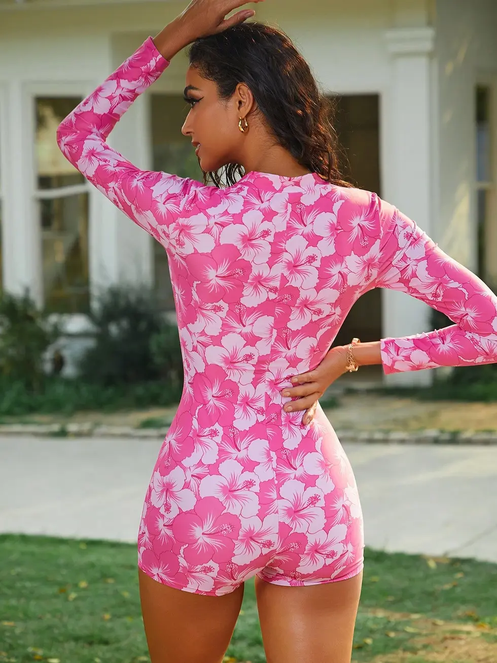 Swim SPRTY 1 Peça Maiô Floral Rosa Estilo Casual Esportivo para Mulheres