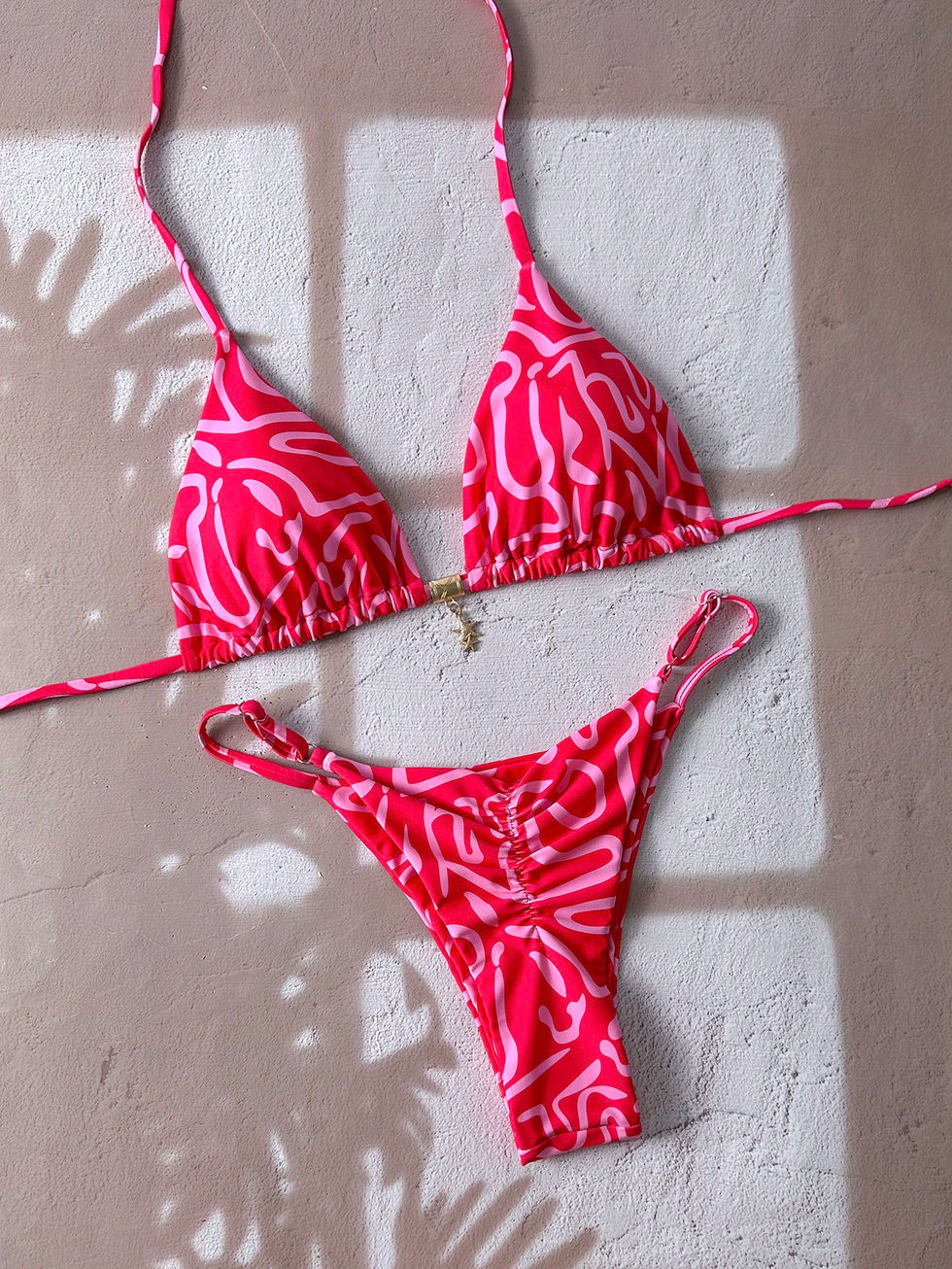 Swim Vcay Conjunto de Maiô Bikini Sexy com Estampa Aleatória e Alça de Espaguet