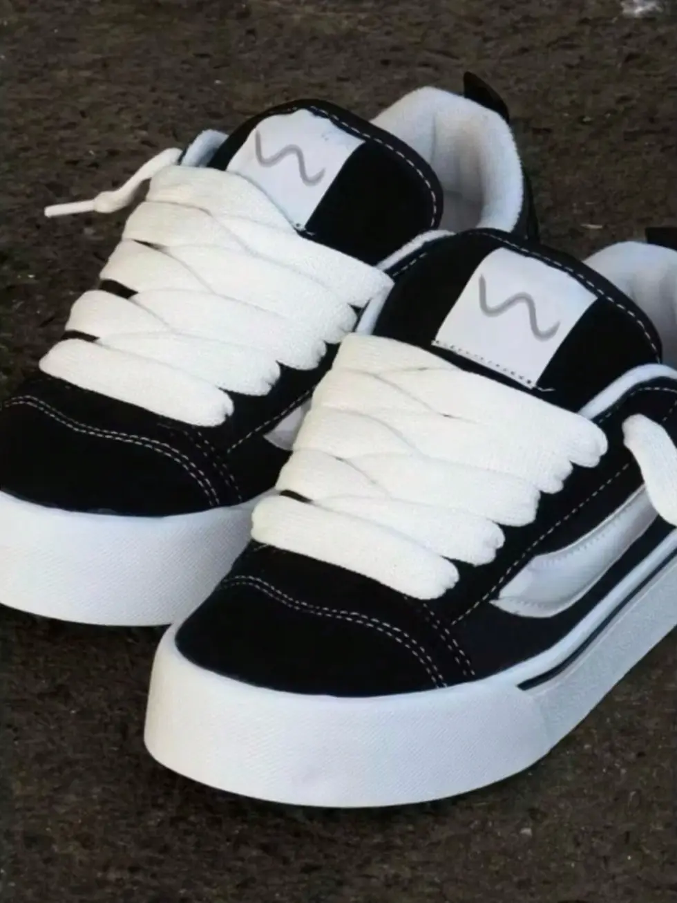 O clássico nunca sai de moda. O Tênis Feminino K.N.U traz o equilíbrio perfeito entre estilo retrô e conforto moderno. Com sua combinação icônica de preto e branco, sola reta e cadarço grosso, esse modelo é ideal para quem ama um visual autêntico, urbano e cheio de atitude.