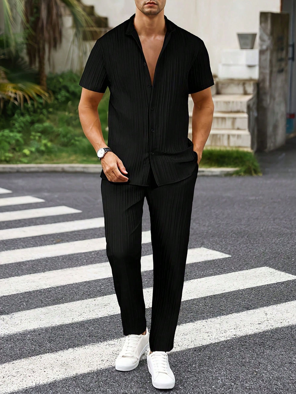 Terno casual masculino de verão, terno de camisa masculino simples e sólido, ca