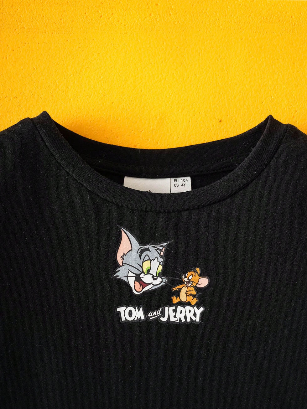 TOM & JERRY X Conjunto de 2 peças com Camiseta Raglan de Manga Curta Preta com