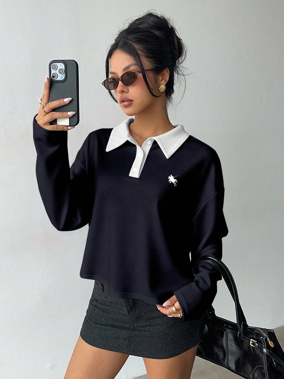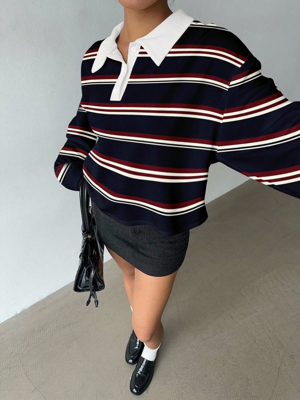 Top Polo de Moletom Feminina Aloruh para Outono/Inverno 2 em 1, Moletom Listrad