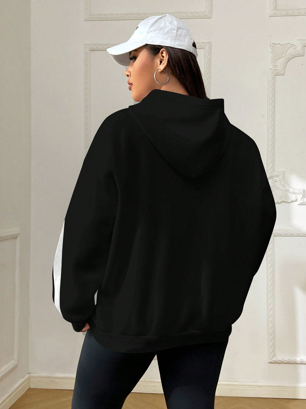 Vestido com Estampa de Letra em Bloco de Cor Preto e Branco para Mulheres Plus