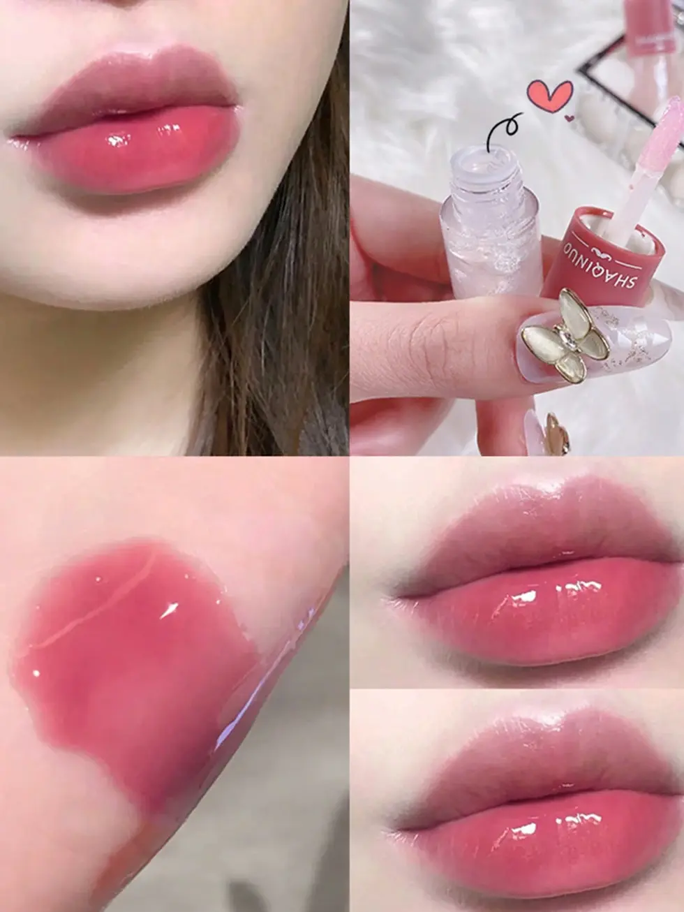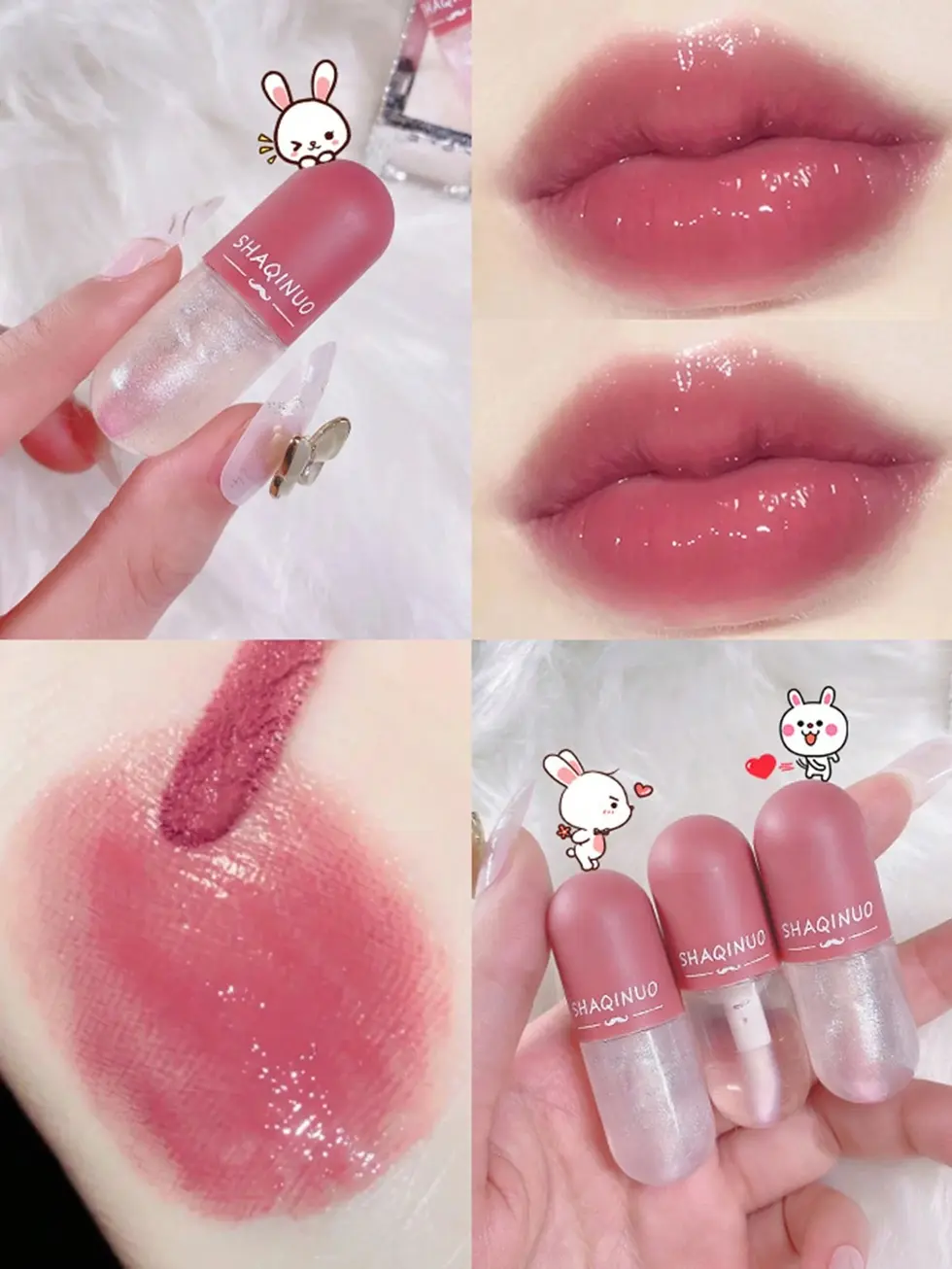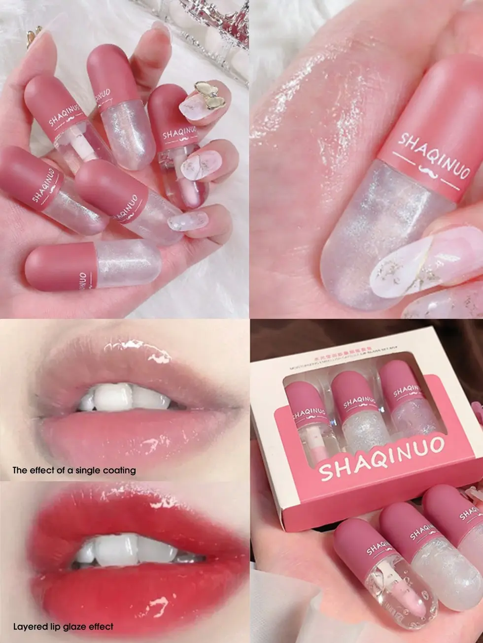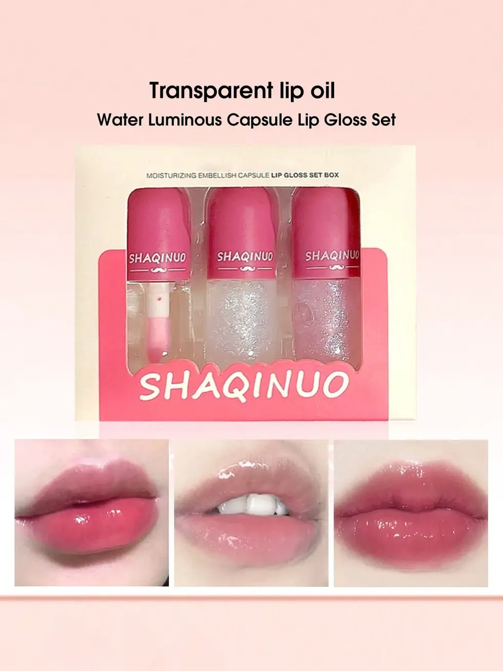 Água Luminoso Brilho Labial Set , 3Peças Hidratante Espelho Multa Cintilante Cu